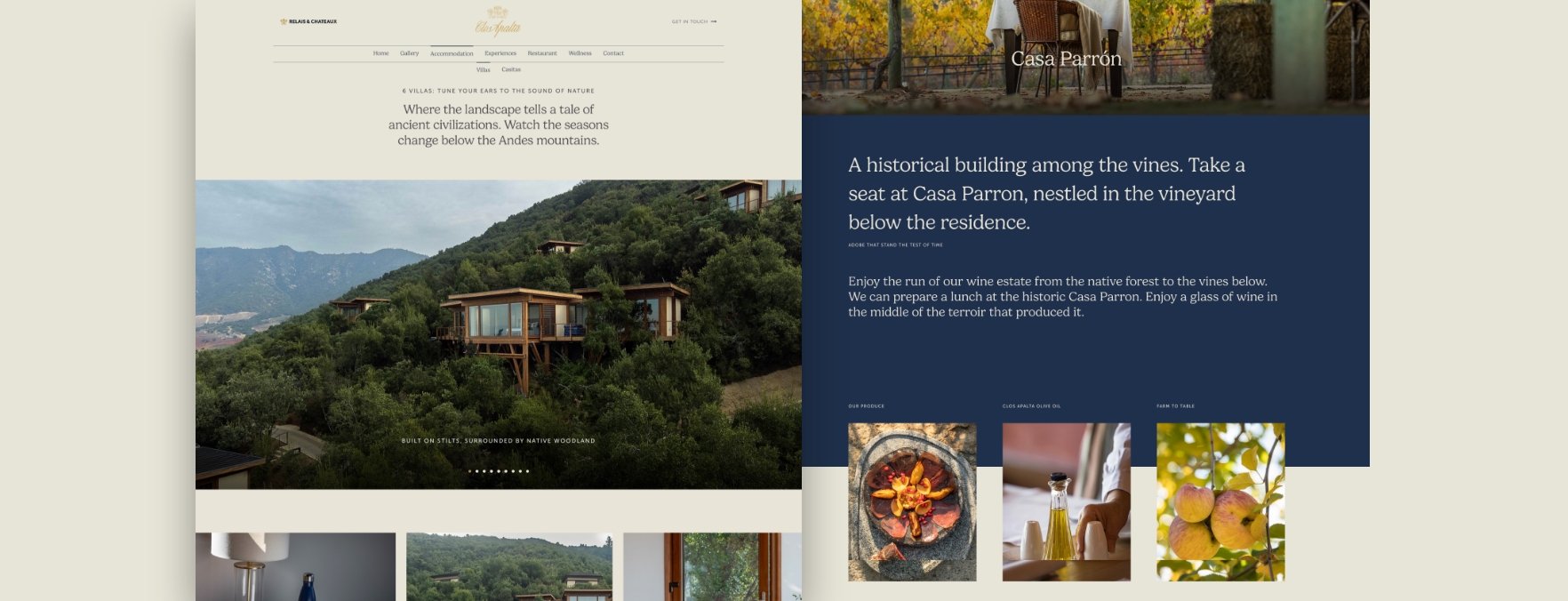 Cada página se diseñó con sobriedad y claridad, permitiendo que la esencia de Clos Apalta aflorara. El resultado no no debía ser solo un sitio web, sino una conversación entre el paisaje, la arquitectura y la historia.