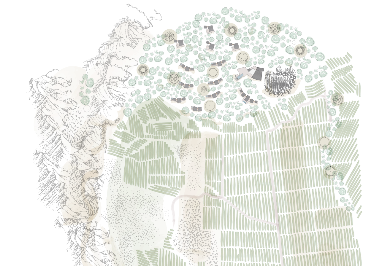 El azul característico, tomado del azulillo nativo, ancla el diseño en el Valle de Apalta. El dorado, un guiño a la herencia familiar, aporta calidez y legado. Los suaves tonos tierra aportan equilibrio, permitiendo que cada tono refleje el paisaje del que proviene.